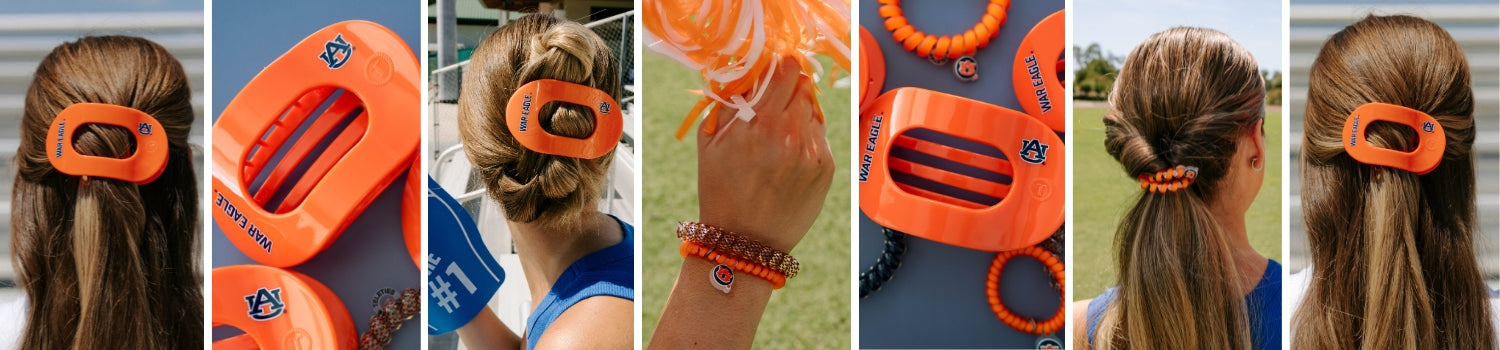 War Eagle! Show your team spirit with TELETIES’ Auburn University accessories. From hair ties to claw clips and flat hair clips, these game day-ready styles are the ultimate Auburn University accessories for fans who love bold hair flair.