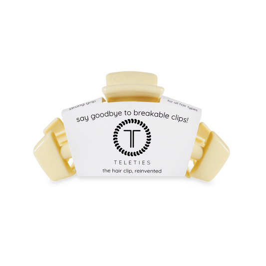Using a medium claw clip with medium-length hair is easy and stylish! For a classic updo, gather your hair into a twist at the back of your head and secure it with the clip. For a half-up look, take the top section of your hair, twist or pull it back, and clip it into place. TELETIES medium hair claw clips are designed for a strong, comfortable hold without pulling or slipping, making them perfect for effortless everyday styles. Whether you're creating a sleek bun or a casual tousled look, these claw clips for medium hair keep your style secure all day!