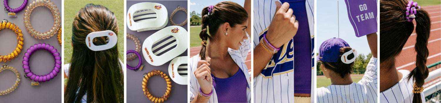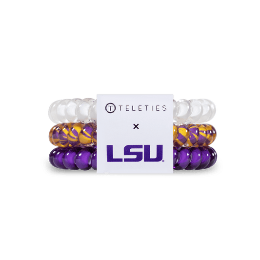 Gear up for game day with TELETIES’ LSU accessories! From hair ties to claw clips and flat hair clips, these spirited LSU hair accessories are perfect for every Tiger fan. Geaux Tigers!