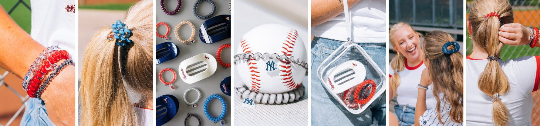 Root for your team in style with our new MLB Collection! Featuring your favorite teams' logo on round flat hair clips and hair ties, our baseball hair accessories are a total home run. Snag your favorite MLB hair accessories for the season at TELETIES.