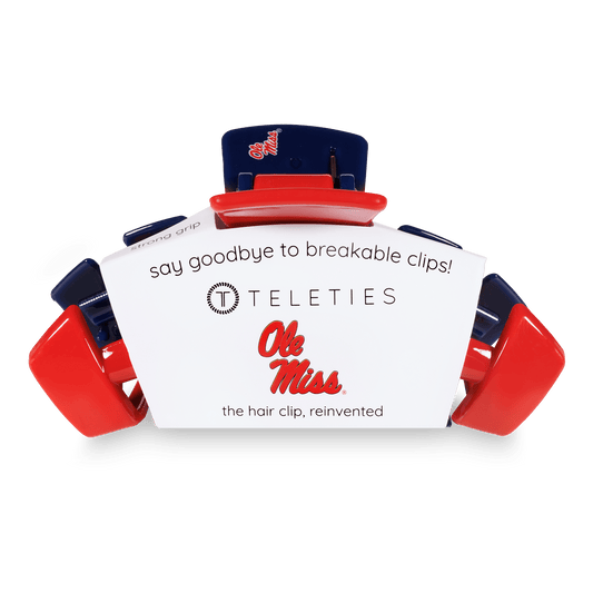 Show off your Rebel pride with TELETIES’ Ole Miss accessories! From hair ties to claw clips and flat hair clips, these stylish Ole Miss accessories are perfect for game days, tailgates, and everyday wear. Hotty Toddy!