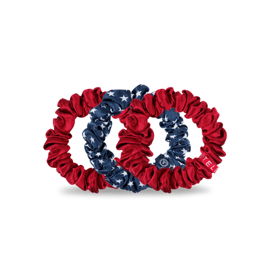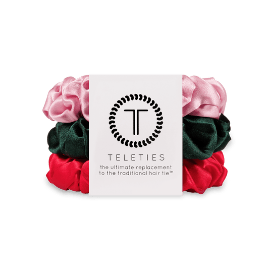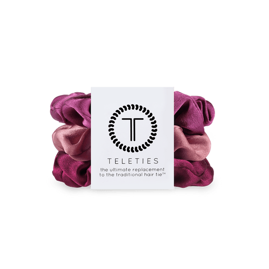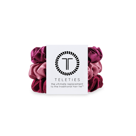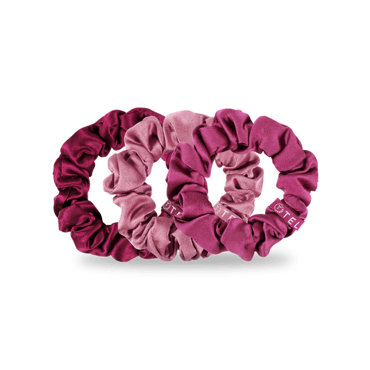 Soft, stylish, and protective, silk scrunchies are the upgrade your hair deserves. These silk hair scrunchies prevent dents, reduce breakage, and are gentle on curls. Each scrunchie has a TELETIES spiral hair tie inside for a strong yet comfortable hold.