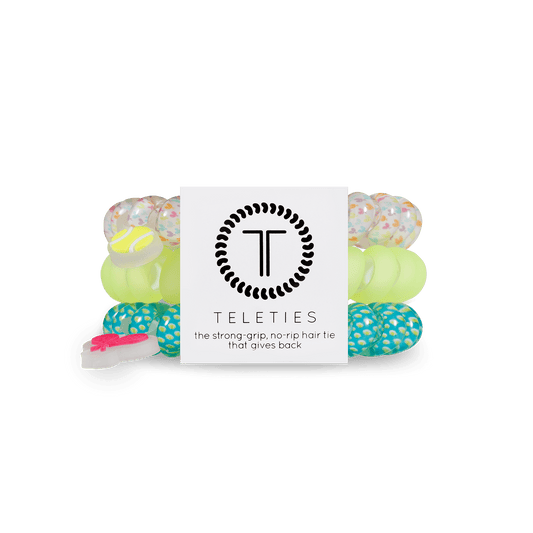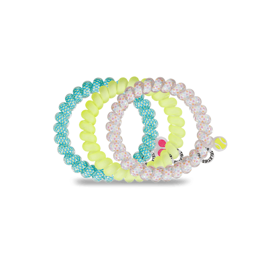 TELETIES sports hair ties are easy to clean, strong-grip, and no-rip, built to keep your hair in place through every workout or game. Fun, functional, and wrist-ready, they move with you from gym to street so you can stay active without missing a beat.