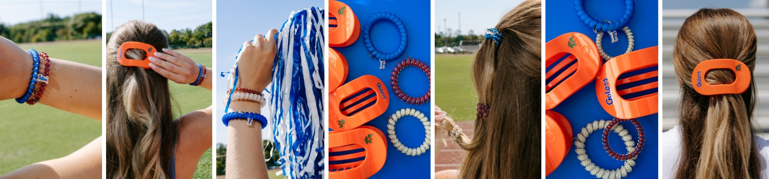 Chomp in style with TELETIES’ Florida Gators accessories! From hair ties to claw clips and flat hair clips, these Florida Gators hair accessories bring team spirit to every hairstyle. Go Gators!