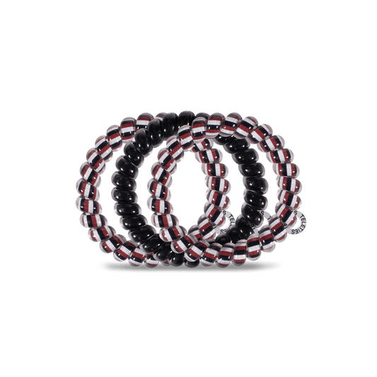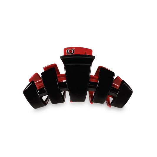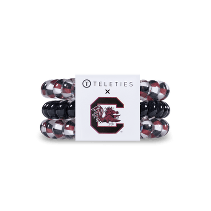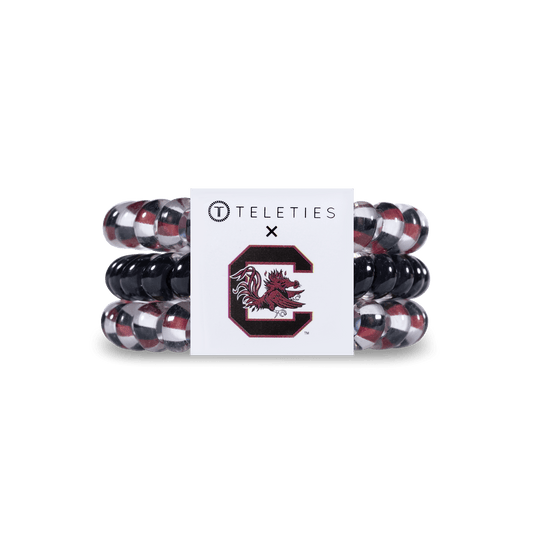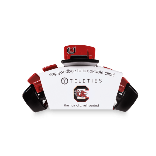Show your University of South Carolina school spirit with TELETIES officially licensed college hair accessories. Our University of South Carolina Hair Accessories collection features USC hair ties, claw clips, and our iconic flat hair clip in garnet and black. Shop now and cheer on your team in style! Go Cocks!