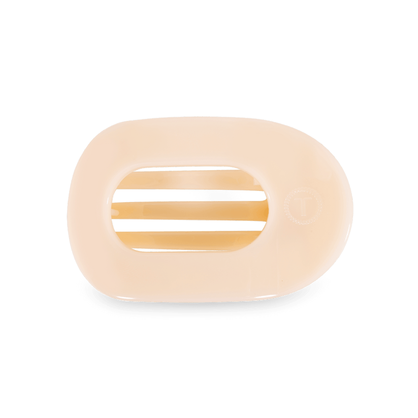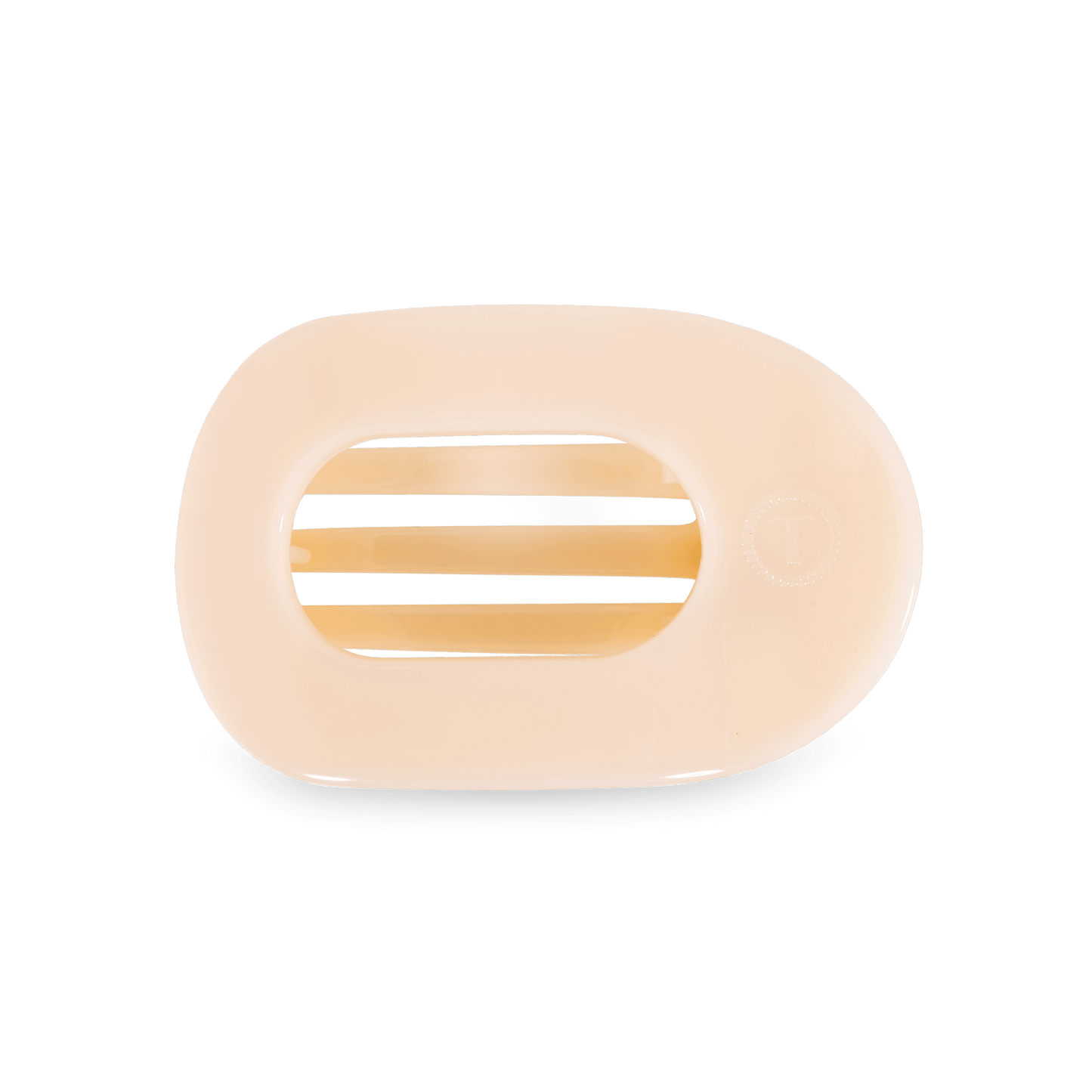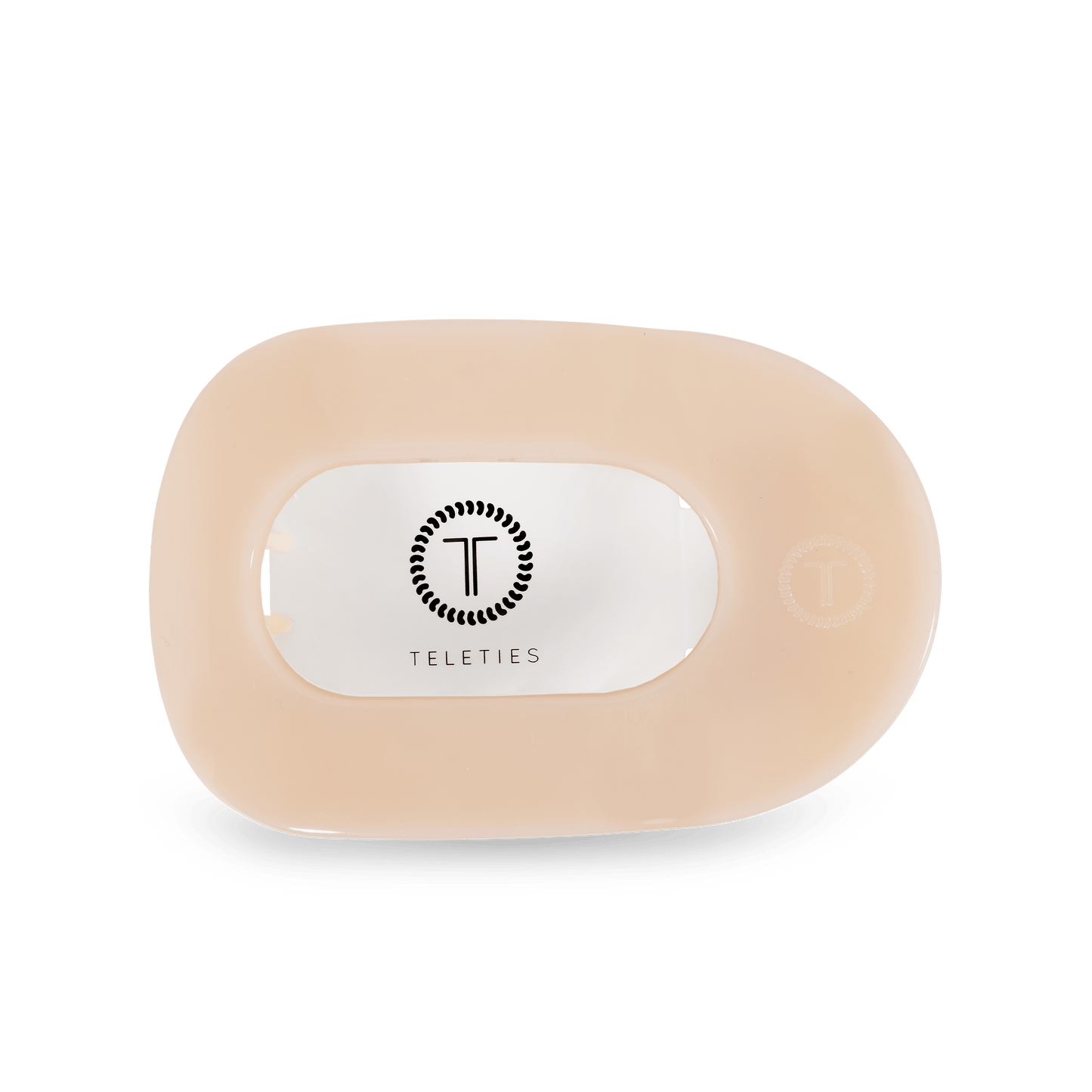 Lay flat and relax with the new TELETIES Almond Beige Medium Flat Round Hair Clip in Beige. This hair clip is designed to allow you to lay back flat, do yoga, or sit comfortably in a seat with a headrest, and it is made with the same material that is nearly unbreakable.