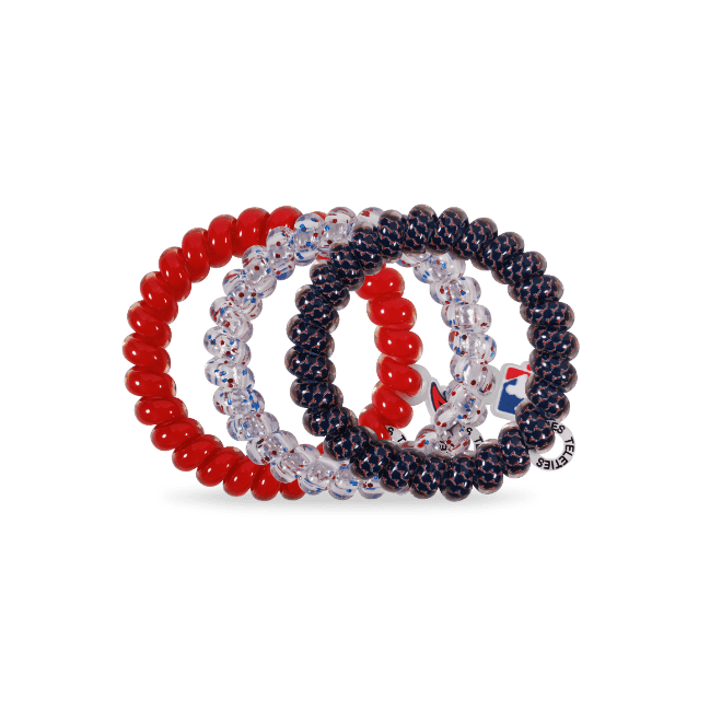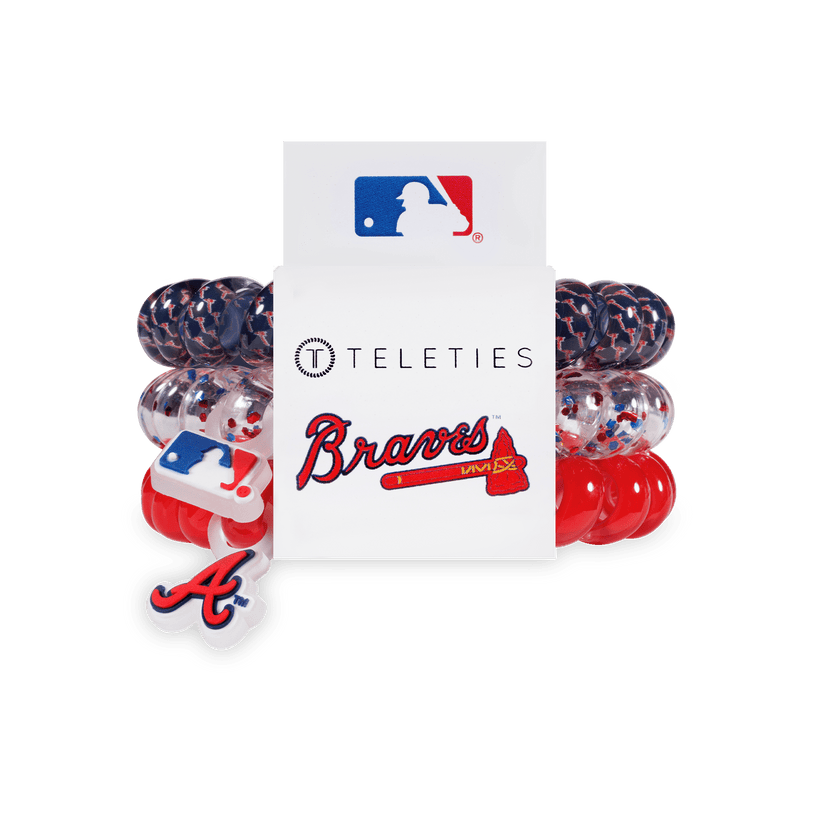 Atlanta Braves Large Hair Ties in Red and Blue offer a strong grip without damage, doubling as a chic wrist accessory when not in use. Your new favorite hair essentials all year round.