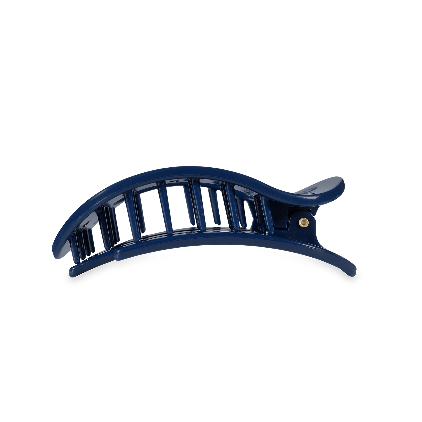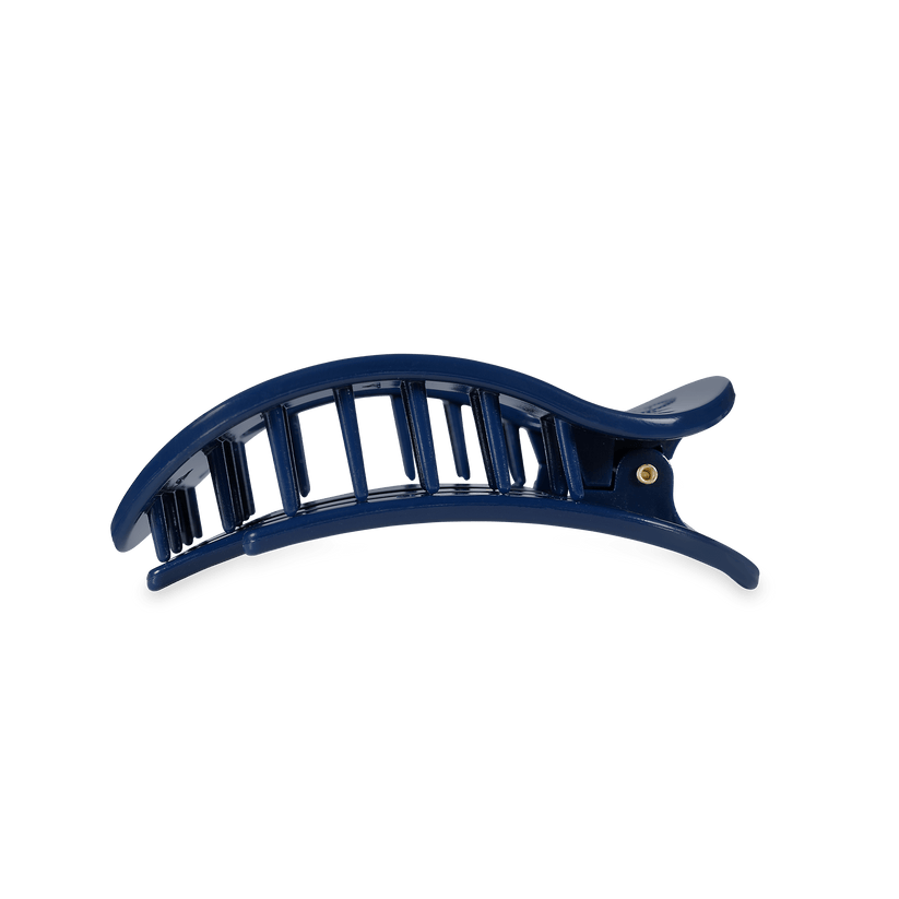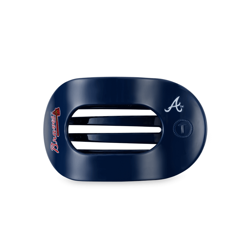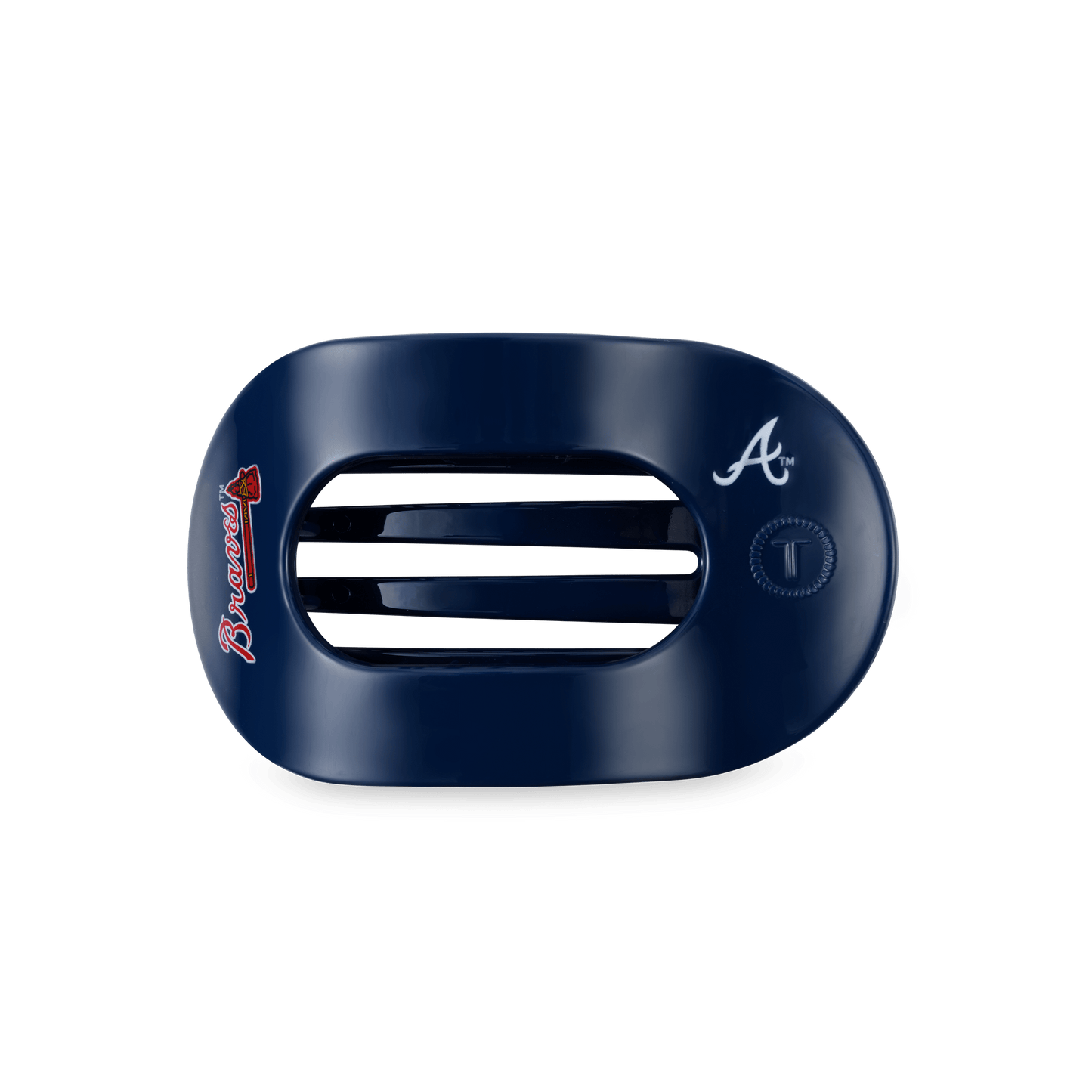 Lay flat and relax with the new TELETIES x MLB®, Atlanta Braves Medium Flat Round Hair Clip in Navy. This hair clip is designed to allow you to lay back flat, do yoga, or sit comfortably in a seat with a headrest, and it is made with the same material that is nearly unbreakable.