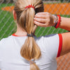 Atlanta Braves Small Hair Ties in Red and Blue offer a strong grip without damage, doubling as a chic wrist accessory when not in use. Your new favorite hair essentials all year round.