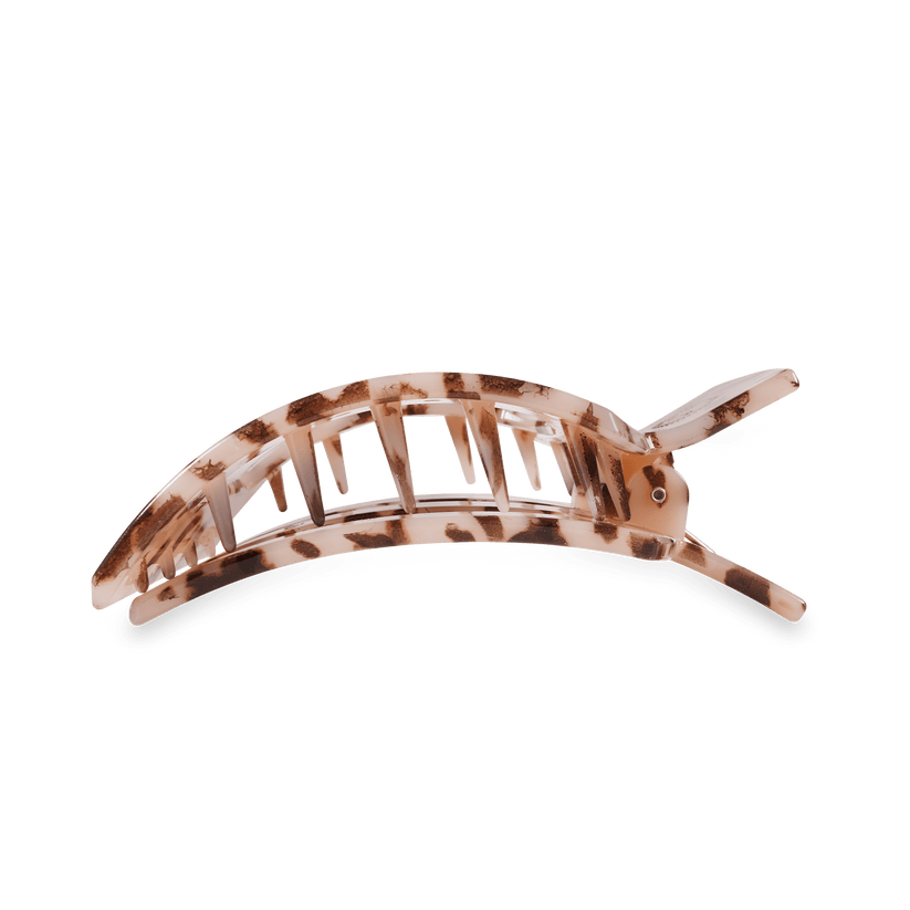 Lay flat and relax with the new TELETIES Blonde Tortoise Large Flat Square Hair Clip. This hair clip is designed to allow you to lay back flat, do yoga, or sit comfortably in a seat with a headrest, and it is made with the same material that is nearly unbreakable.