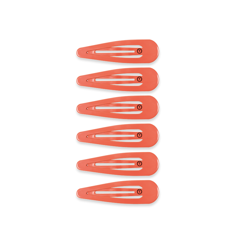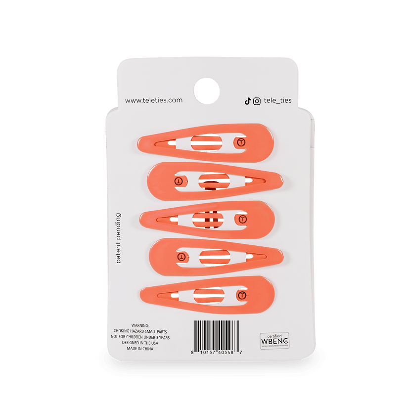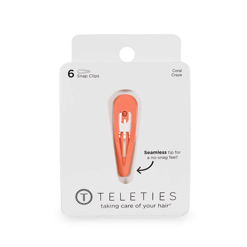 TELETIES Coral Craze Snap Clips in Coral offer a secure seamless tip for a no snag feel. Perfect for all hair types, these stylish barrettes provide a gentle yet firm hold, whether you're styling or simply pulling back strands. Available in a range of colors, TELETIES Snap Clips combine functionality with flair, ensuring your hair stays put all day long.