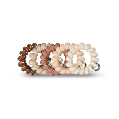 For the Love of Nudes Tiny Hair Ties in Brown Beige are the ultimate solution for securing braid ends, styling little kids' hair, or managing ultra-thin strands. These mini hair coils are designed to fit an adult finger like a ring rather than a bracelet, offering a strong, damage-free grip that keeps hair in place all day—without breakage, creases, or headaches.