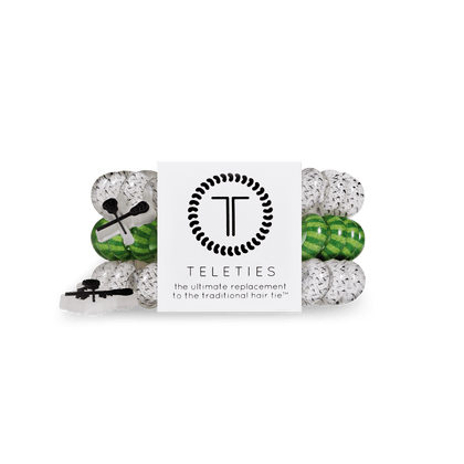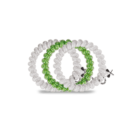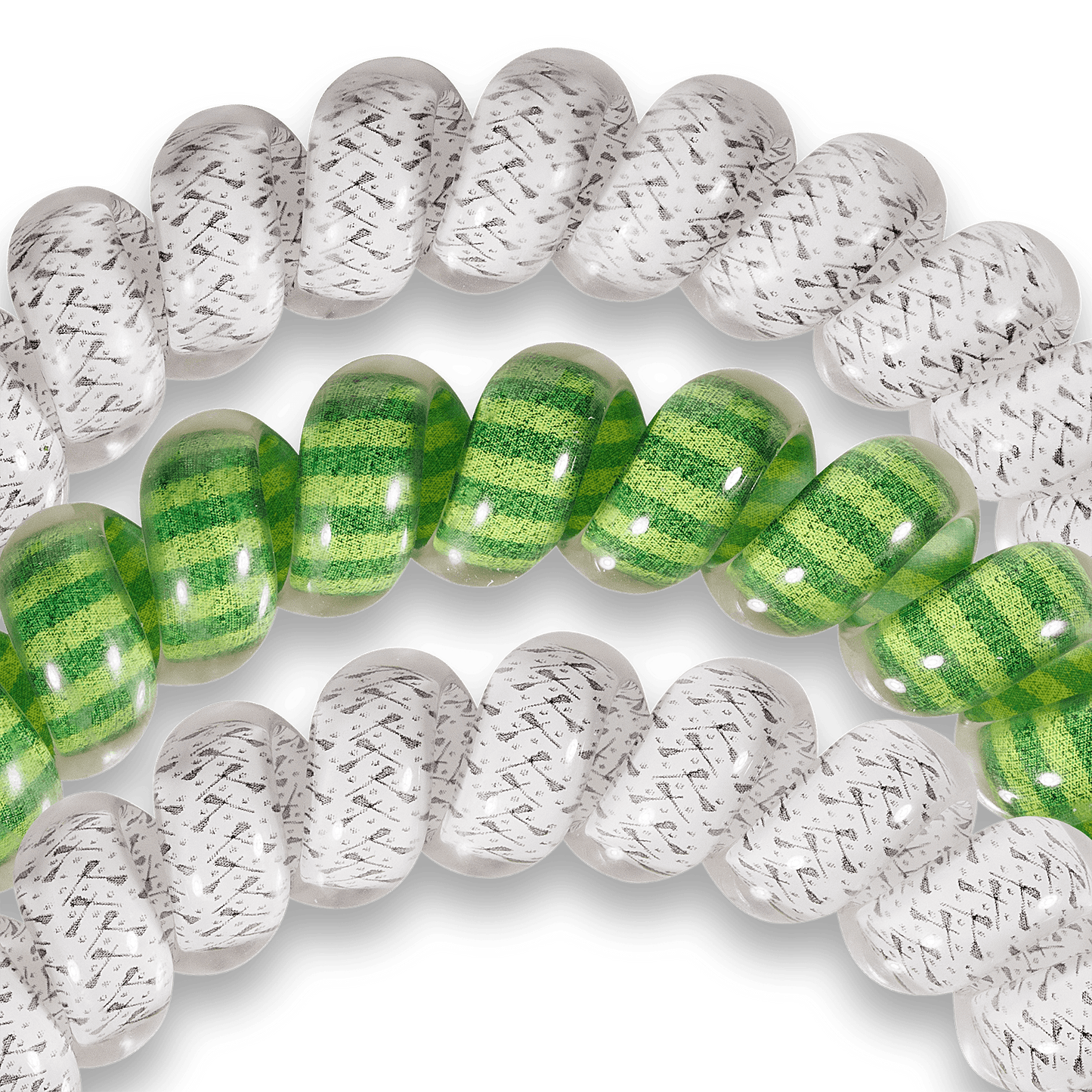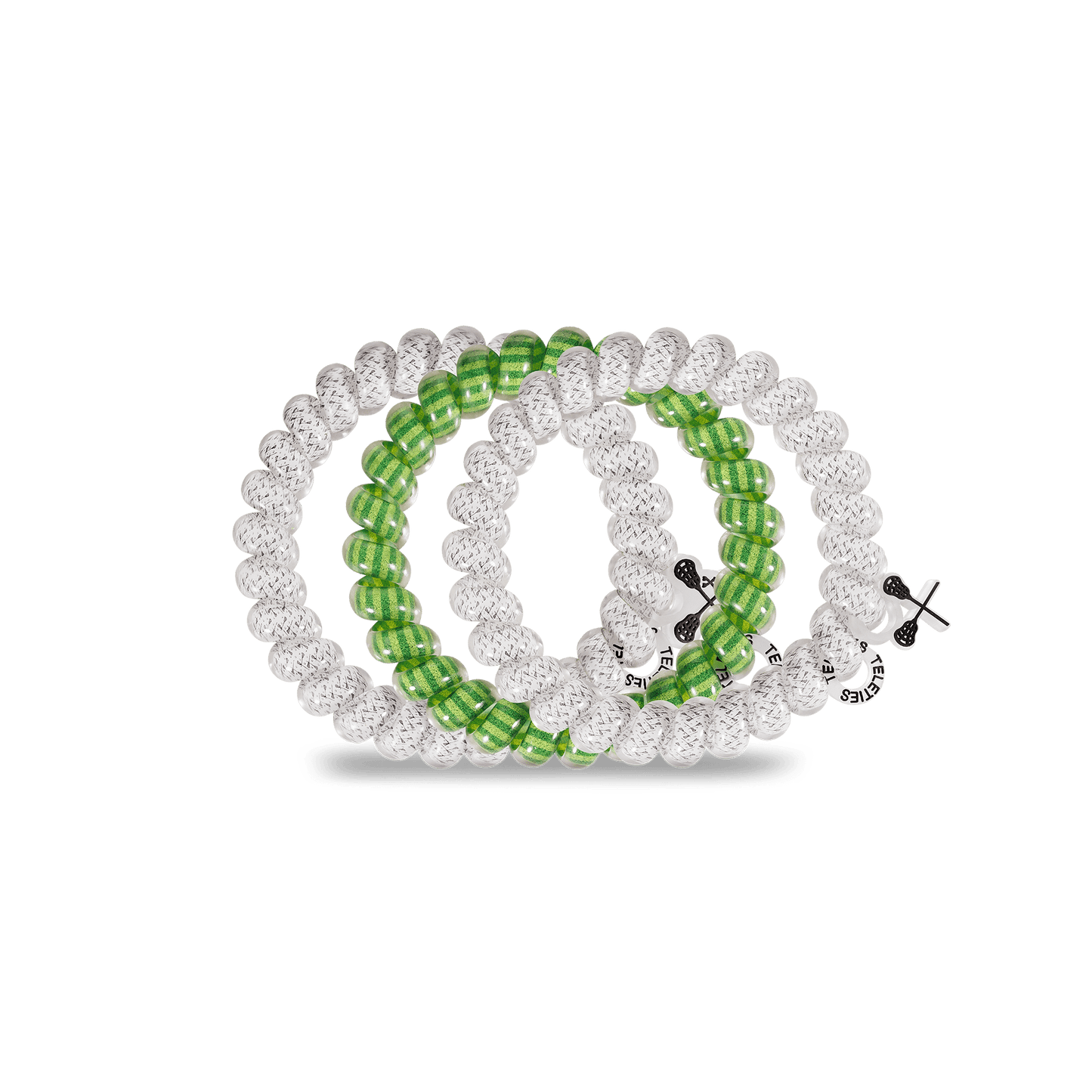 Lacrosse Large Hair Ties in Green White offer a strong grip without damage, doubling as a chic wrist accessory when not in use. Your new favorite hair essentials all year round.