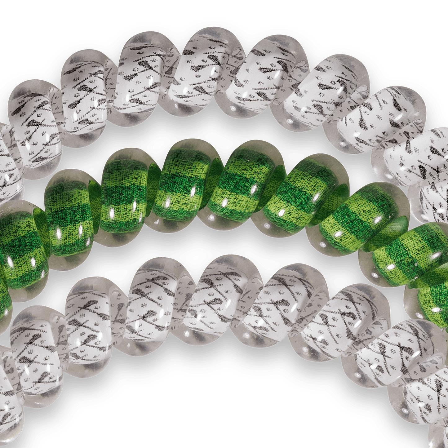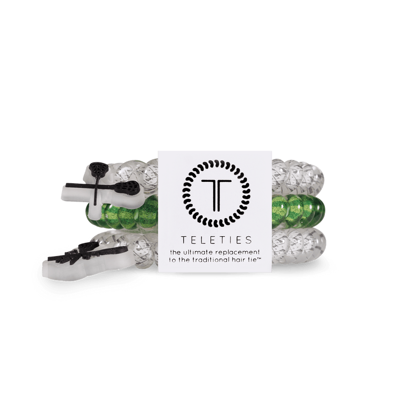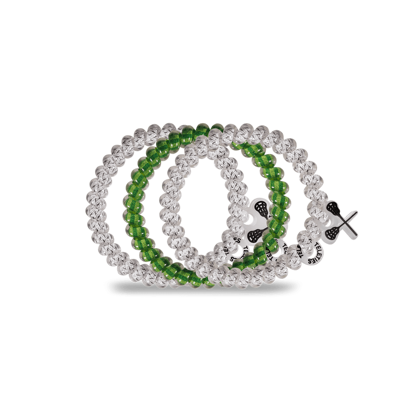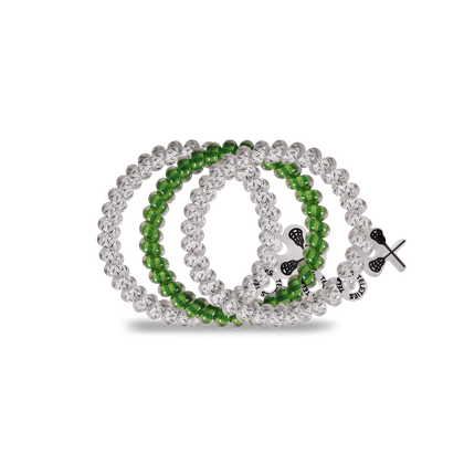 Lacrosse Small Hair Ties in Green White Blue offer a strong grip without damage, doubling as a chic wrist accessory when not in use. Your new favorite hair essentials all year round.