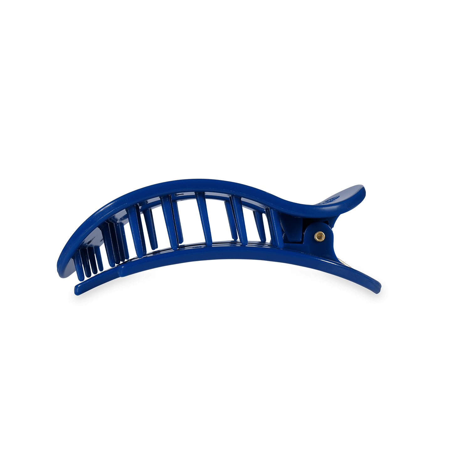 Lay flat and relax with the new TELETIES x MLB®, Los Angeles Dodgers Medium Flat Round Hair Clip in Navy. This hair clip is designed to allow you to lay back flat, do yoga, or sit comfortably in a seat with a headrest, and it is made with the same material that is nearly unbreakable.