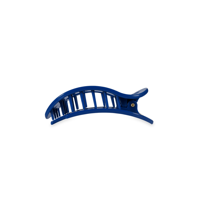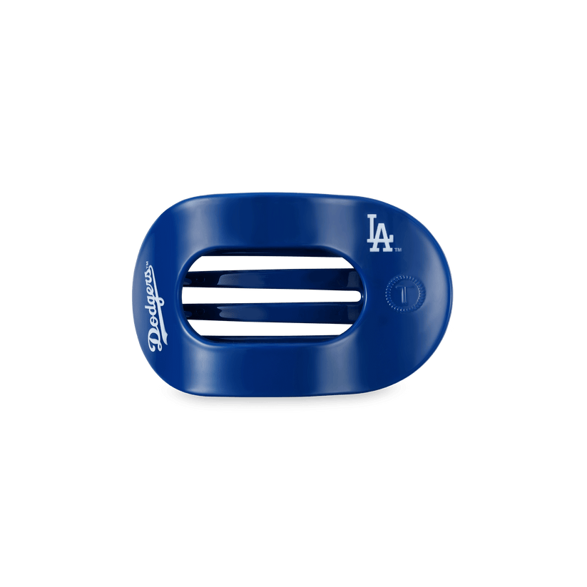 Lay flat and relax with the new TELETIES x MLB®, Los Angeles Dodgers Small Flat Round Hair Clip in Navy. This hair clip is designed to allow you to lay back flat, do yoga, or sit comfortably in a seat with a headrest, and it is made with the same material that is nearly unbreakable.