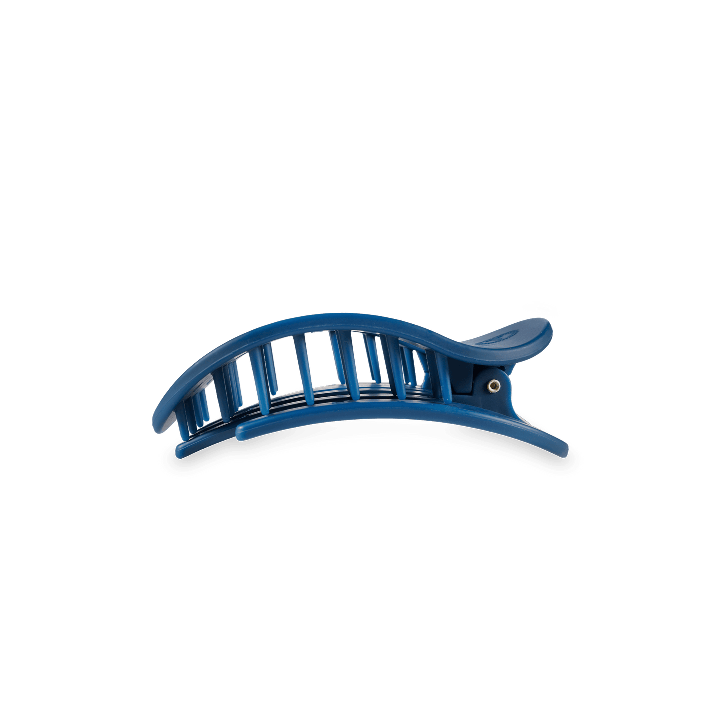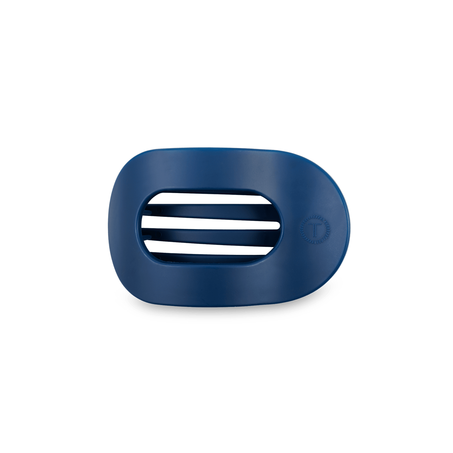 Lay flat and relax with the new TELETIES Midnight Rain Small Flat Round Hair Clip in Blue. This hair clip is designed to allow you to lay back flat, do yoga, or sit comfortably in a seat with a headrest, and it is made with the same material that is nearly unbreakable.