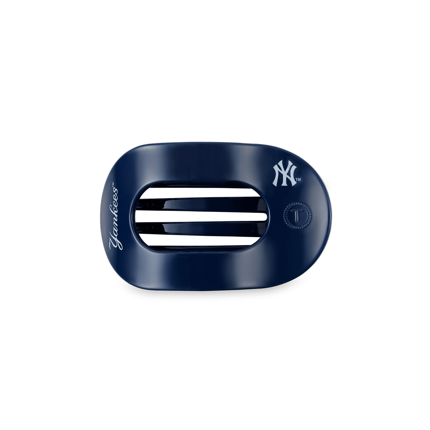 Lay flat and relax with the new TELETIES x MLB®, New York Yankees Small Flat Round Hair Clip in Navy. This hair clip is designed to allow you to lay back flat, do yoga, or sit comfortably in a seat with a headrest, and it is made with the same material that is nearly unbreakable.