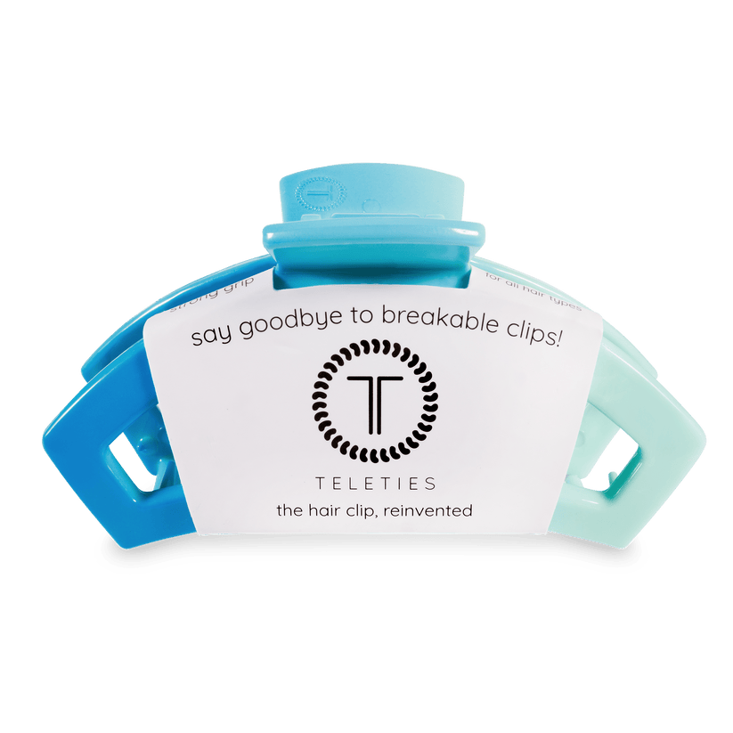 Say goodbye to breakable hair clips! We have perfected the hair tie and now have re-invented the clip. Meet the Open Poolside Large Claw Hair Clip in Blue, crafted to elevate any hairstyle with the ideal blend of style and function.