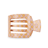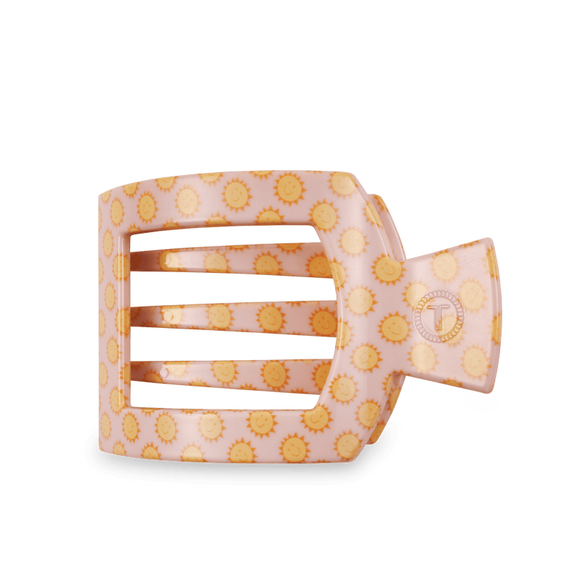 Lay flat and relax with the new TELETIES Sunny Days Ahead Large Flat Square Hair Clip in Yellow Pink. This hair clip is designed to allow you to lay back flat, do yoga, or sit comfortably in a seat with a headrest, and it is made with the same material that is nearly unbreakable.