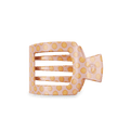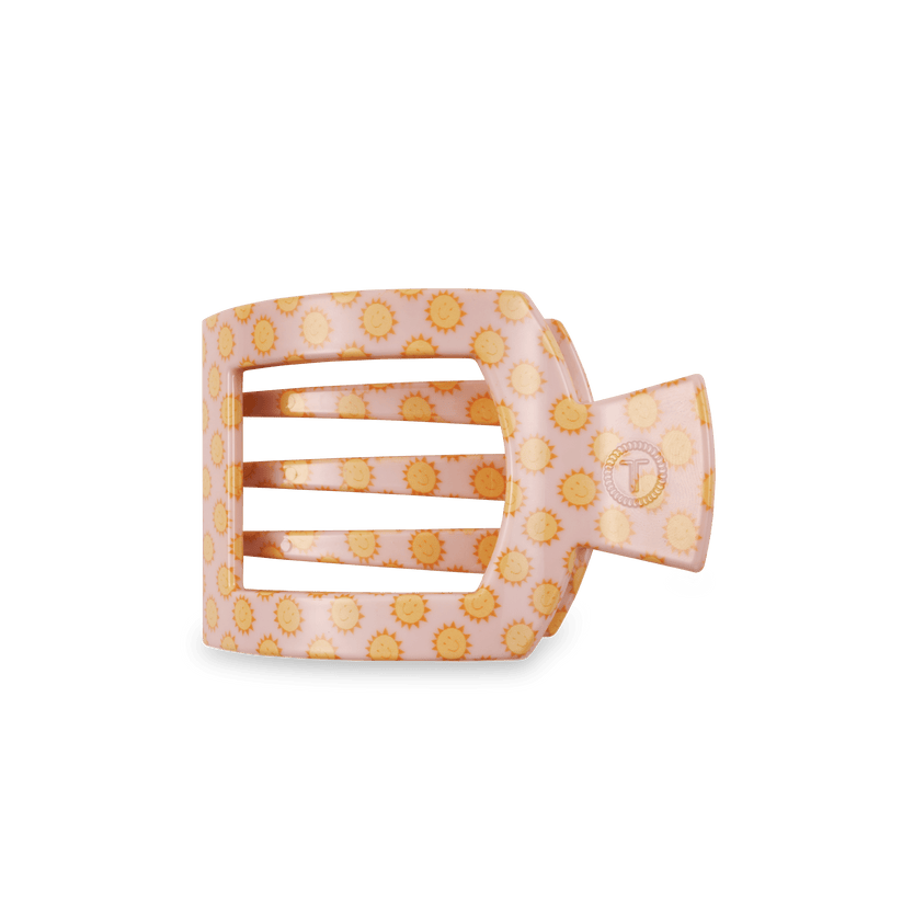Lay flat and relax with the new TELETIES Sunny Days Ahead Medium Flat Square Hair Clip in Yellow Pink. This hair clip is designed to allow you to lay back flat, do yoga, or sit comfortably in a seat with a headrest, and it is made with the same material that is nearly unbreakable.