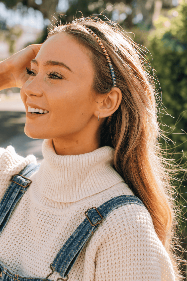 Sunset Gold Headband in Yellow features a no-slip rubber stopper and flexible spiral design that holds your hair in place—without the ouch. Say goodbye to pinching, pressure, or itchy plastic teeth like other headbands.