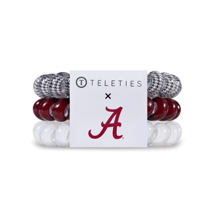Roll Tide! Large Hair Ties in Crimson and Gray offer a strong grip without damage, doubling as a chic wrist accessory when not in use. Your new favorite hair essentials all year round. Shop your favorite University of Alabama hair accessories now! Roll tide!