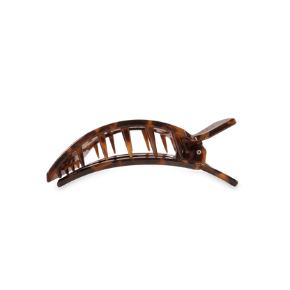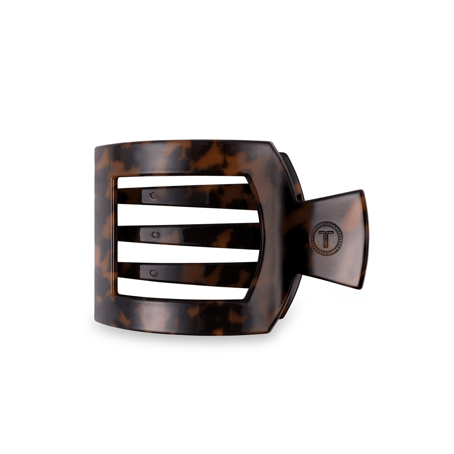 Lay flat and relax with the new TELETIES Tortoise Medium Flat Square Hair Clip. This hair clip is designed to allow you to lay back flat, do yoga, or sit comfortably in a seat with a headrest, and it is made with the same material that is nearly unbreakable.