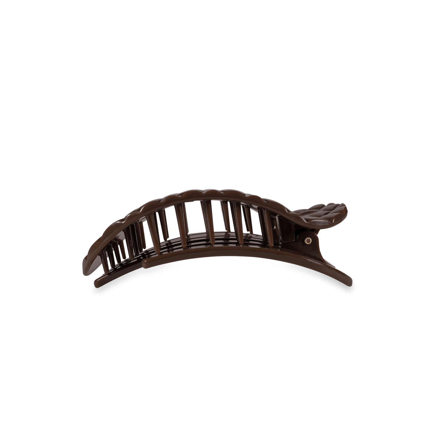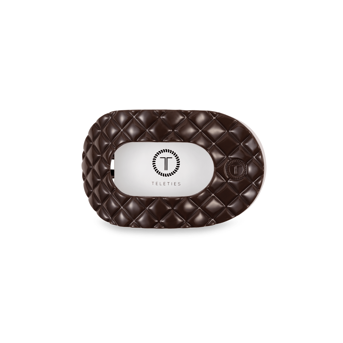 Lay flat and relax with the new TELETIES Truly Taupe Quilted Small Flat Round Hair Clip in Brown. This hair clip is designed to allow you to lay back flat, do yoga, or sit comfortably in a seat with a headrest, and it is made with the same material that is nearly unbreakable.