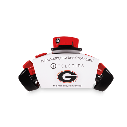 Say goodbye to breakable hair clips! We have perfected the hair tie and now have re-invented the clip. Meet the University of Georgia Medium Claw Hair Clip in Black Red, crafted to elevate any hairstyle with the ideal blend of style and function.