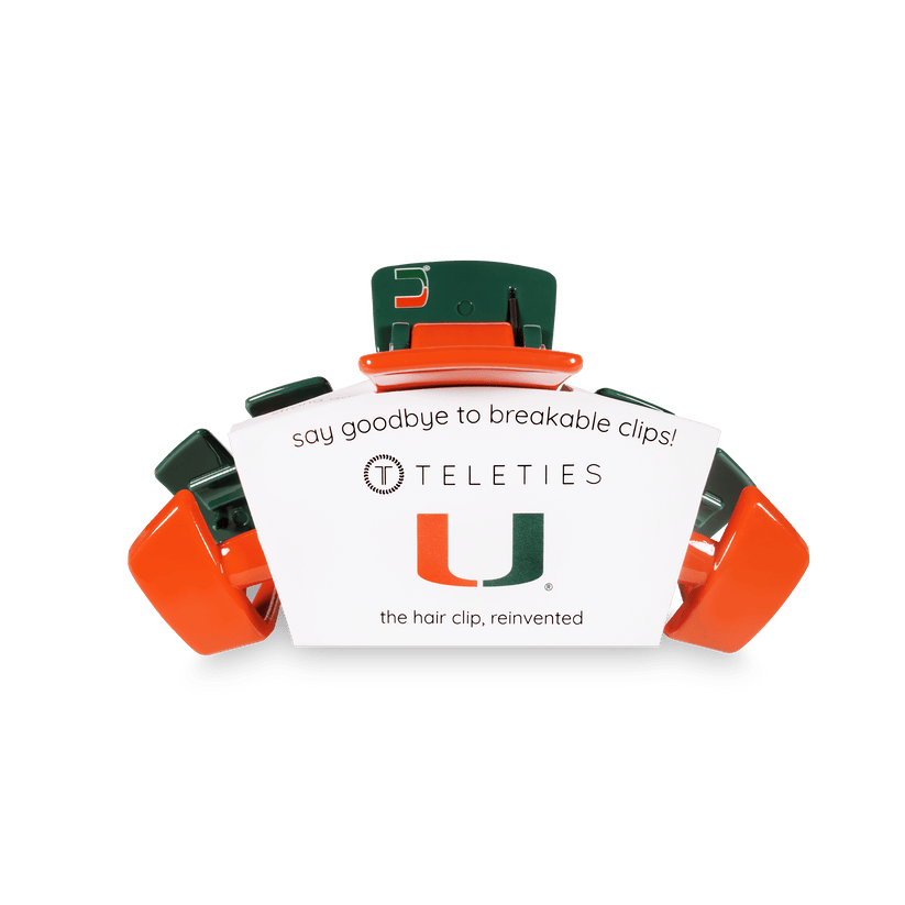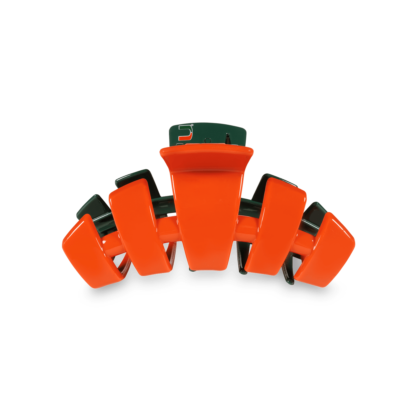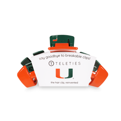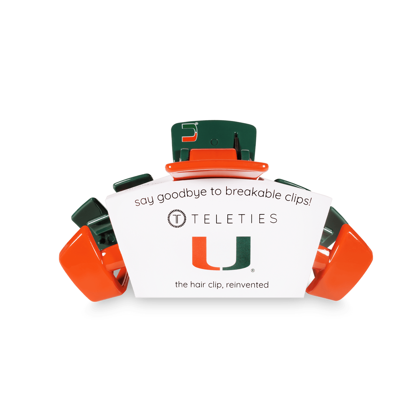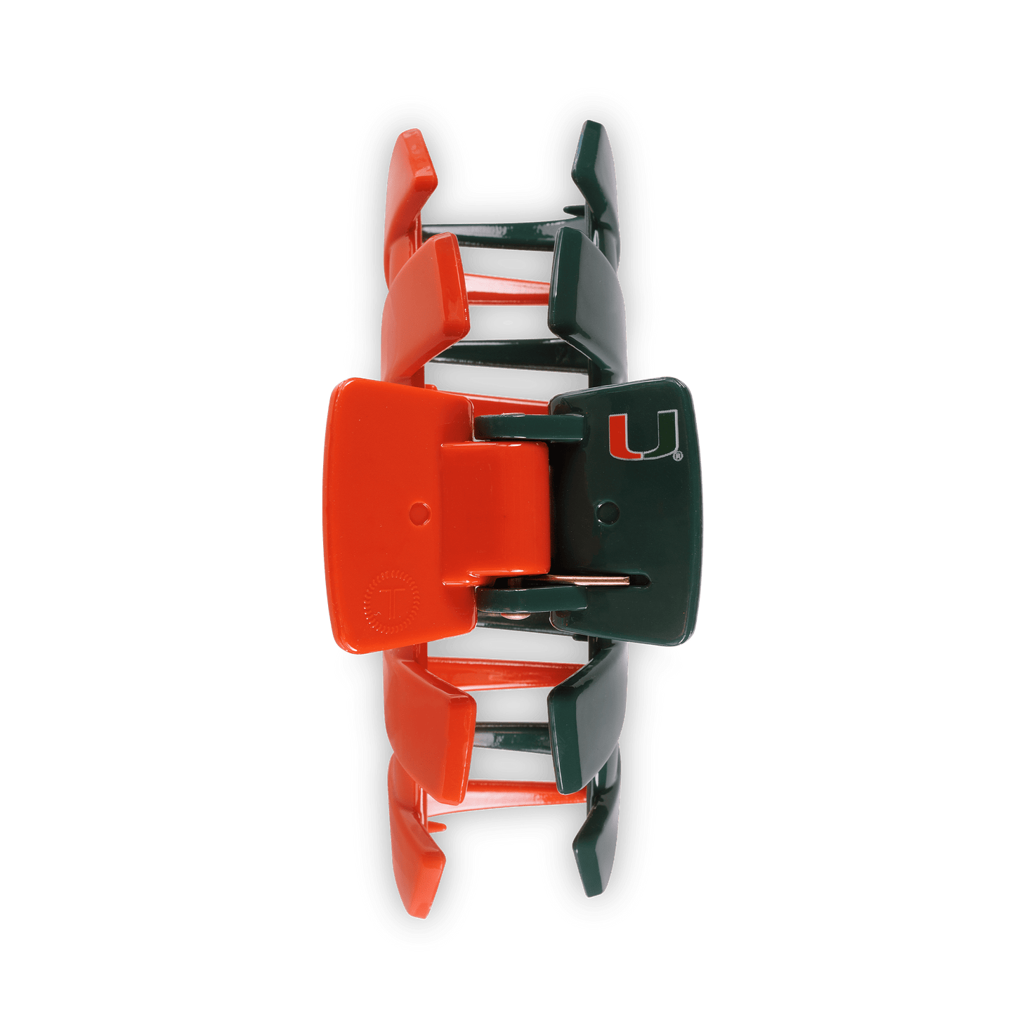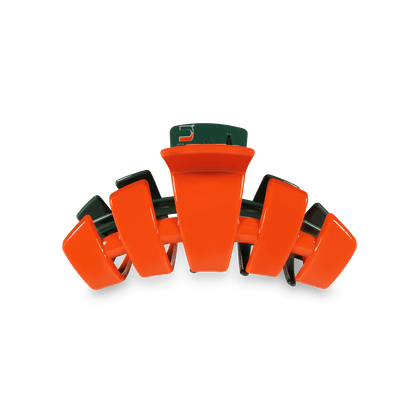 Say goodbye to breakable hair clips! We have perfected the hair tie and now have re-invented the clip. Meet the University of Miami Medium Claw Hair Clip in Green Orange, crafted to elevate any hairstyle with the ideal blend of style and function.