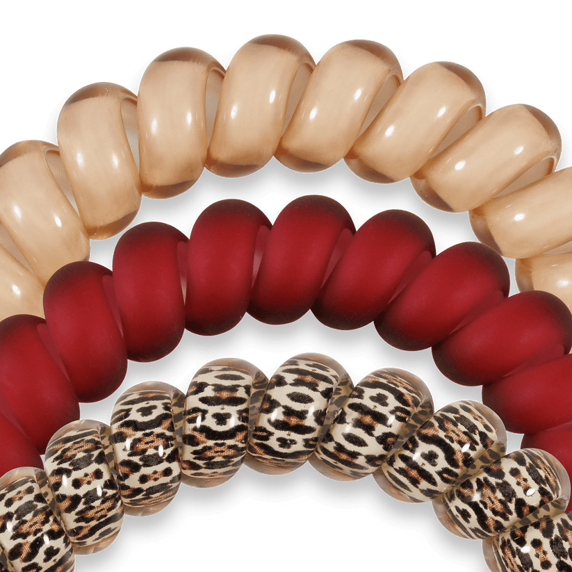Wild SIde Large Hair Ties in Burgundy and Beige offer a strong grip without damage, doubling as a chic wrist accessory when not in use. Your new favorite hair essentials all year round.